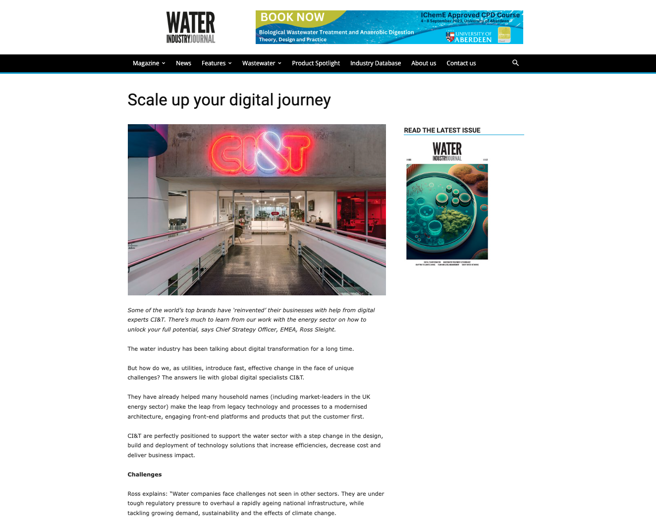 In 2023, CI&T began a quarterly growth partnership with trade magazine, Water Industry Journal, to engage subscribers about how to modernise technology, operations and customer experiences.